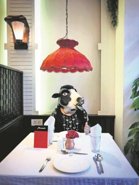 En sus redes sociales sólo hay nueve fotografías de las 20 que ha tomado. En todas ellas, una mujer aparece usando una máscara de vaca, ya sea en lugares públicos o en la intimidad.
