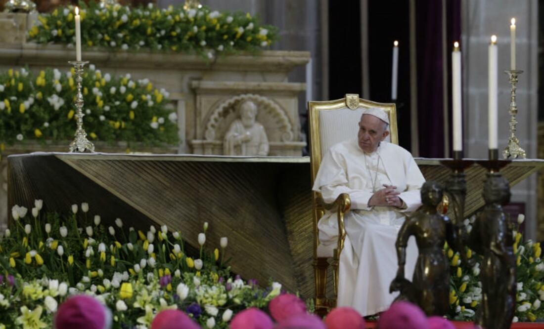 After delivering his homily, Pope Francis sat silently in an armchair that was moved in front of the image of the Virgin of Guadalupe while the service continued in Mexico City.
