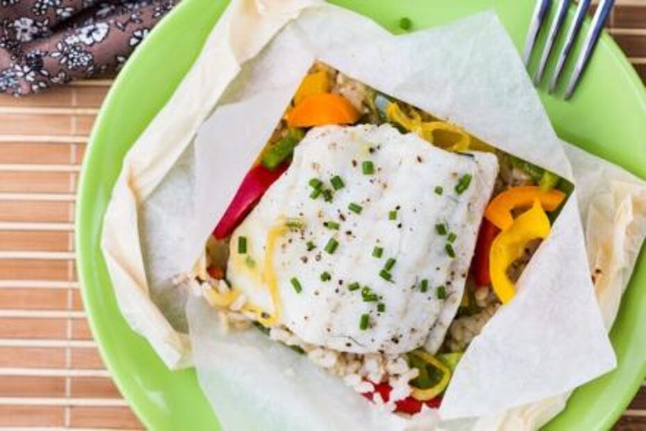 No sabotees tu dieta cocinando tu porción de pescado con grasa. Opta por métodos de cocción en donde puedas obviar este elemento o, bien, utilizar una menor cantidad. El empapelado o papillot, sólo recuerda utilizar papel encerado y cerrar bien cada porción.