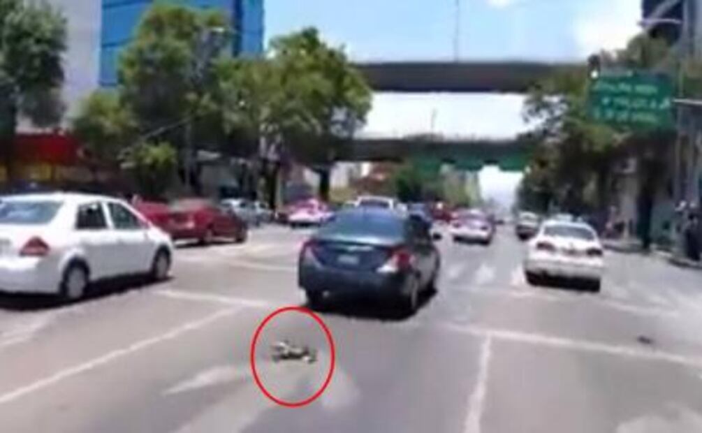 La usuaria @calaveritabike compartió un video de dos minutos donde captó el recorrido que hizo para salvar al can, que corría frenético entre los vehículo y fue revolcado por uno de ellos .