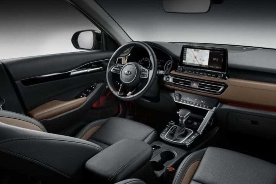 Al ser la KIA Seltos tope de gama , la versión GT Line presume de cambios estéticos ligeros, luces ambientales, asientos con costuras rojas y ventilación, iluminación 100 por ciento de LED.