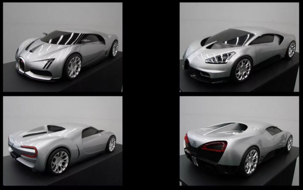 Recientemente, el fabricante francés compartió imágenes de varios modelos a escala 1:4 que muestran cómo podría haber lucido el Bugatti Chiron. Estas maquetas, desarrolladas en 2008 durante las primeras etapas del proceso de diseño, presentan una variedad de estilos, desde líneas más agresivas hasta formas clásicas.