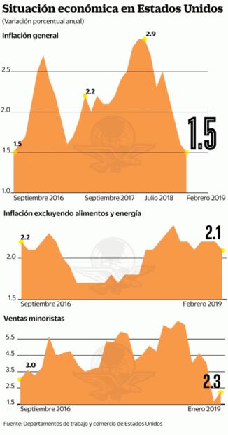 Ayer se informó que la inflación al consumidor fue de 1.5% en febrero pasado, la menor desde septiembre de 2016, una señal de que la economía estadounidense se desacelera.