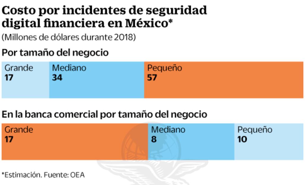 La Organización de los Estados Americanos (OEA) informó que en 2018 el costo de recuperación y respuesta a ciberataques en el sistema financiero mexicano fue de 107 millones de dólares.