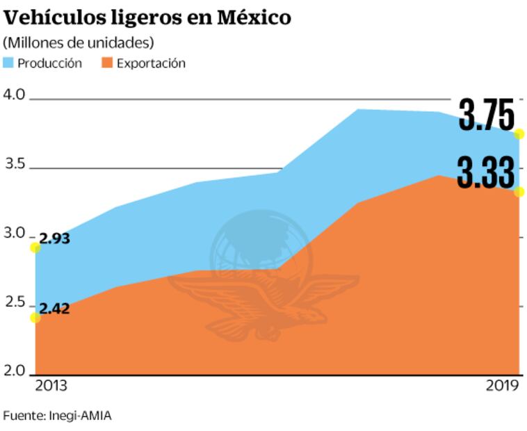 Mientras que se exportaron 3 millones 333 mil 586 vehículos, 3.3% menos respecto a 2018.