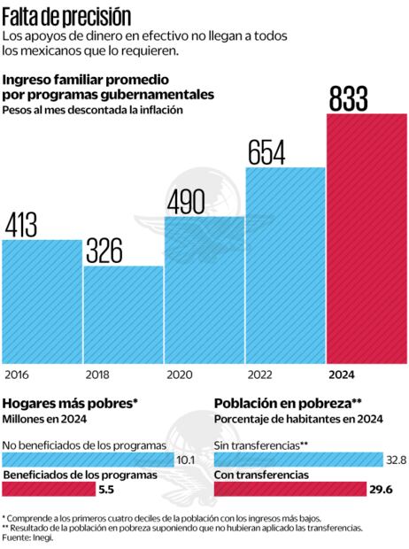 El problema está en que los programas sociales están lejos de ser universales, ya que los datos de la ENIGH muestran que dos de cada tres hogares carecen de transferencias gubernamentales.