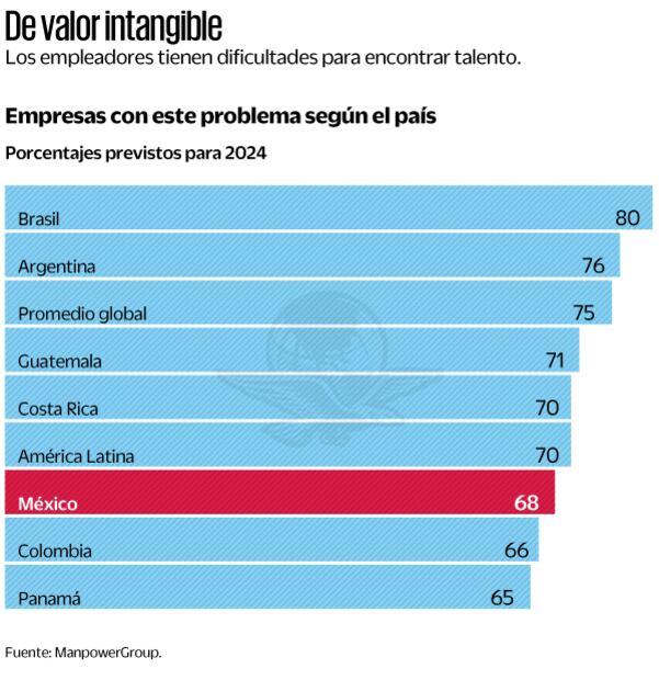 Las previsiones más recientes del grupo especializado en recursos humanos indican que 68% de las empresas globales enfrentarán dificultades para encontrar el talento que necesitan en México para 2024.