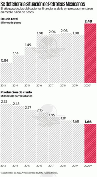 En el evento virtual Perspectivas crediticias 2021 para América Latina, Fitch Ratings detalló que por las necesidades de inversión de la petrolera mexicana es que continúan las pérdidas constantes, con lo que el gobierno ha estado inyectando capital a la empresa y tratando de reducir las tasas impositivas para aligerar las presiones sobre sus finanzas.