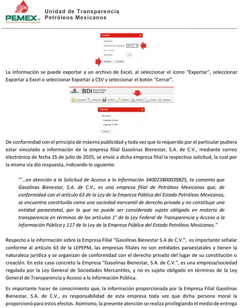 “Gasolinas Bienestar, S.A. de C.V., es una empresa filial de Petróleos Mexicanos que, de conformidad con el artículo 63 de la Ley de la Empresa Pública del Estado, Petróleos Mexicanos, se encuentra constituida como una sociedad mercantil de derecho privado y no constituye una entidad paraestatal, por lo que no puede ser considerada sujeto obligado en materia de transparencia en términos del artículo 117 de la Ley de la Empresa Pública del Estado, Petróleos Mexicanos”, respondió la compañía a la solicitud vía transparencia.