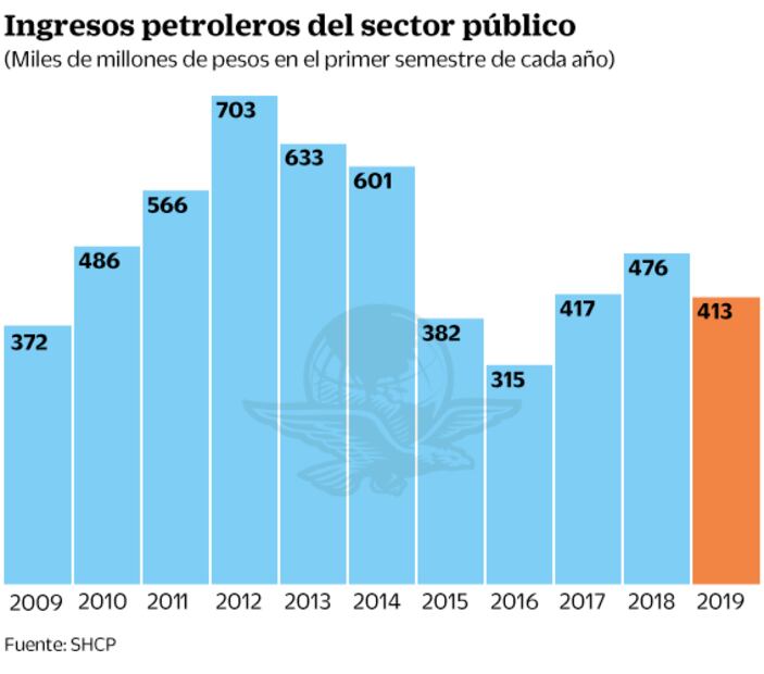 La semana pasada, Hacienda dio a conocer el informe de finanzas públicas al primer semestre del año, en el que reportó ingresos petroleros por 412 mil 627 millones de pesos, un monto que resultó 107 mil 629 millones inferior al que programó.