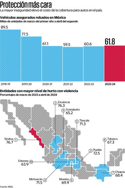 Explicó que las marcas que han tenido el mayor impacto en la siniestralidad coinciden con los autos más robados en México, las cuales se han mantenido en los primeros lugares en incidencias, según los datos de la industria.
