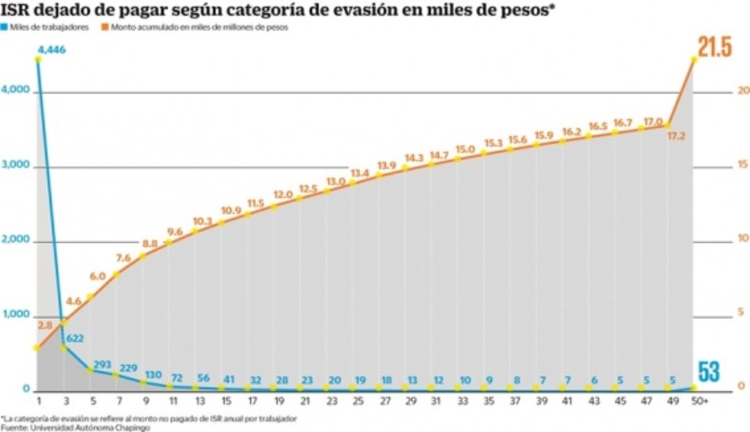 Esta cantidad equivale a 3.39% del Impuesto Sobre la Renta (ISR) recaudado en 2017, dice el estudio elaborado por el Departamento de Estadística Matemática y Cómputo de la Universidad Autónoma Chapingo.