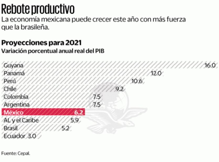 Al presentar el Estudio Económico de América Latina y el Caribe, Bárcena expuso que ante el mayor comercio exterior, la movilidad y más llegada de remesas, entre otros factores, la Cepal ajustó las expectativas de crecimiento para 2021, ahora en 6.2% desde 5.8% que previó en julio pasado.