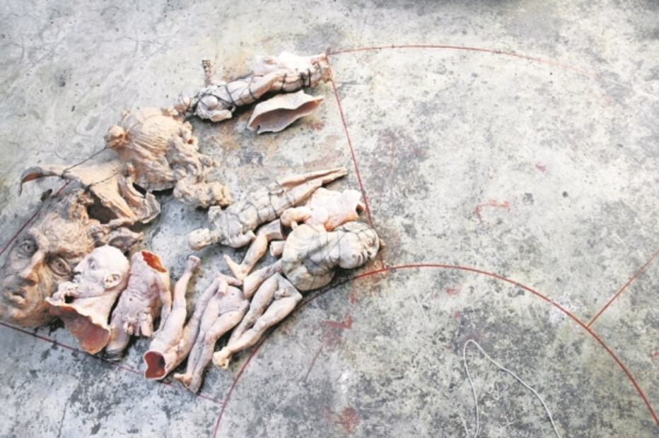 Las piezas circulares están rellenas con fragmentos de varias esculturas de épocas anteriores del trabajo de Marín. “Es una metáfora de cómo me veo: somos un poquito fragmentos de todas las generaciones, las culturas que nos integran, un poquito de todo”.