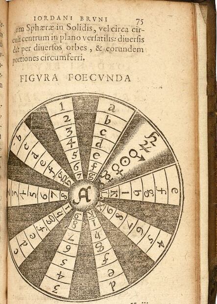 Además, su mnemonía o arte de la memoria constituyó una de sus aportaciones más originales. Desarrollada en obras como De umbris idearum (1582) y Cantus Circaeus (1582), Bruno elaboró un complejo sistema de asociaciones simbólicas que permitían amplificar las capacidades memorísticas. No se trataba de un simple truco mnemotécnico, sino de un método para reorganizar el conocimiento universal. Escribió tanto en latín como en italiano, alternando diálogos filosóficos con tratados científicos y obras literarias como Candelaio (1582), comedia en la que satirizó la pedantería académica de su tiempo. Transitó entre géneros con la misma fluidez con que cruzaba fronteras físicas, siempre perseguido, siempre reinventándose.