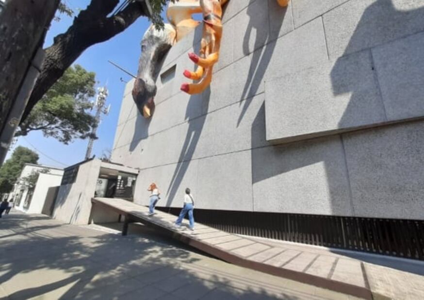 Caminando sobre Avenida Revolución , sin detener su paso un grupo de jóvenes levantan la vista y ríen entre sí. Una reacción esperada ante lo inverosímil que acaban de ver: un pollo gigante cuelga de la fachada del Museo de Arte Carrillo Gil .