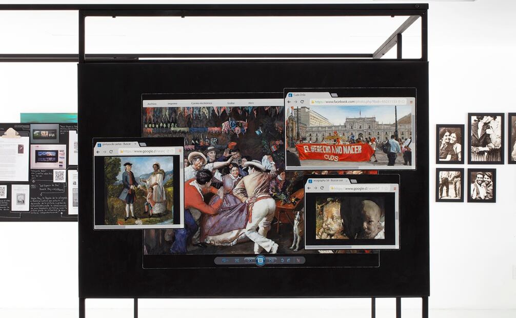A propósito de los 50 años del Golpe de Estado en Chile, se incluye un montaje de cuatro imágenes icónicas del período dictatorial impresas sobre tela en gran formato intervenidas con vistosos códigos QR, que enlazan a contenidos diversos. La obra se describe como una reactivación de archivos y reflexión desde la post-memoria.
