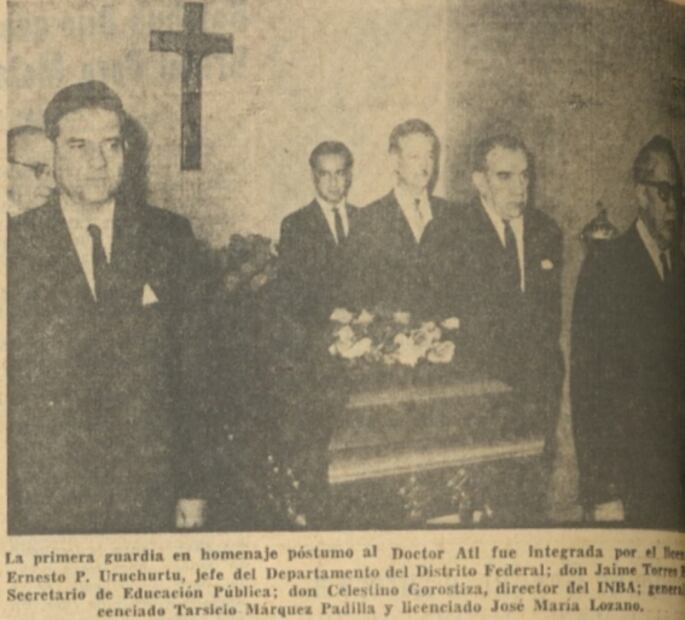 Los restos mortales del “Dr. Atl” fueron de inmediato llevados a la Agencia Gayosso, lugar adonde concurrieron gran número de funcionarios públicos y personalidades distinguidas del mundo intelectual mexicano.