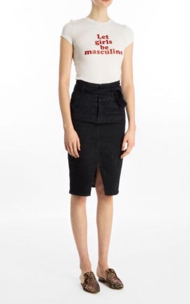 “Let girls be masculine”, es la frase de esta playera con la que podrás combinar tus vaqueros favoritos, además de incluir un mensaje feminista en letras rojas que hace alusión al empoderamiento de la mujer.
