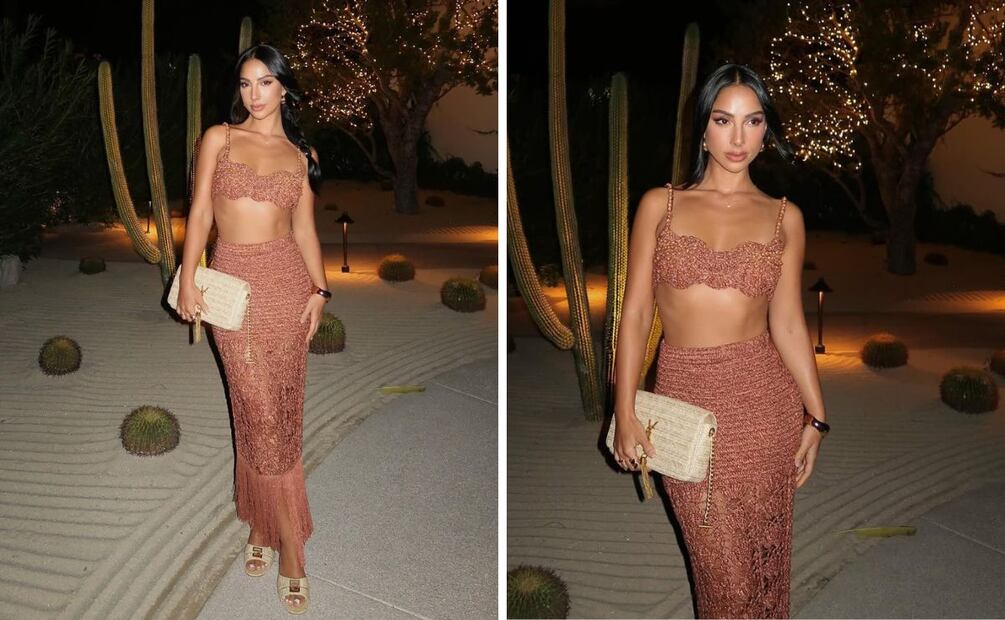 Si celebrarás en la playa, no dudes en visitar la cuenta de Instagram de Chacón, porque suele lucir looks muy bonitos en sus viajes a este tipo de destinos. Este set nos gusta mucho porque mezcla sensualidad y elegancia, con detalles como flecos y brillos, pero sin dejar de lado un elemento "playero" como es el crochet. Ella compartió que es de la marca Retrofête. Una falda midi como esta puede ser una gran aliada. Cambia el crop top por una blusa o suéter festivo si en el lugar hace frío.