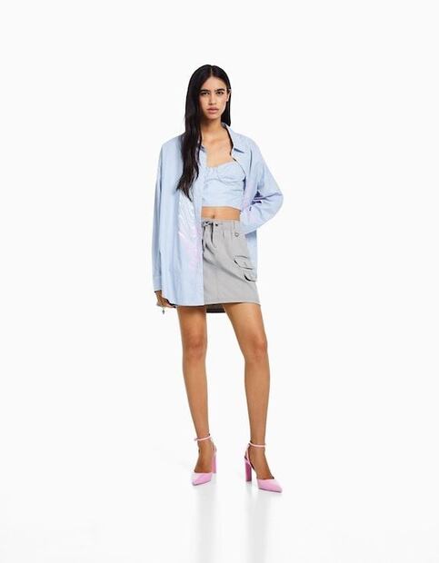 Las faldas cargo con textura denim nos fascinaron para tener una icónica pieza Y2K en el guardarropa, la de la imagen es de Zara. Precio: 1,299 pesos.