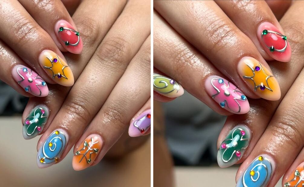 Para el verano de este año, esperamos ver colores vivos como rosa intenso, lima y naranja en este tipo de uñas, realzados con relieves y cristales. El color de algunas frutas también puede inspirar diseños de aura nails y el azul que evoca el mundo marino también.