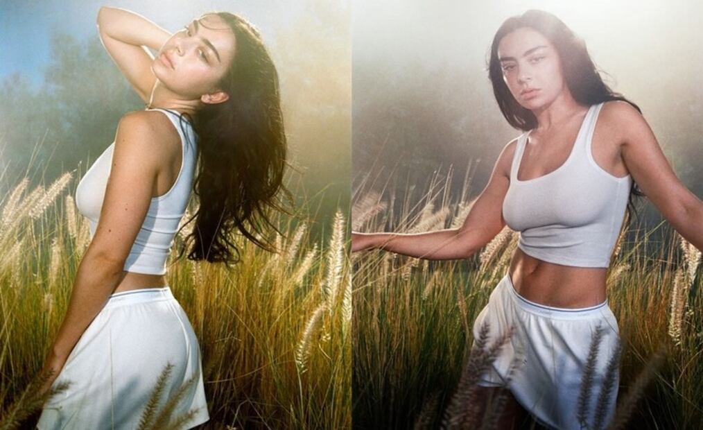 Las imágenes de la campaña muestran a Charli XCX en distintos escenarios que resaltan la versatilidad de la colección. En una de las tomas se ve a la artista en medio de un campo de trigo, luciendo un conjunto de bóxer y top blanco que contrasta con el paisaje natural. Esta imagen captura a la perfección la esencia de la marca: una combinación de sencillez y elegancia.