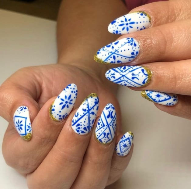 Este diseño es nuestro favorito de la temporada con colores que están en tendencia y lo mejor es que el print se puede adaptar al largo de uñas con el que te sientas más cómoda. Como tip adicional, puedes buscar en internet otros diseños usados en talavera y pedirle a tu manicurista de confianza que los replique sobre tus uñas que serán la sensación.