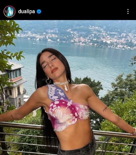 A través de su Instagram, Dua Lipa compartió fotos posando con un total look denim que cautivó a todos sus seguidores, y el protagonista de su look fue el top de mariposa , una prenda que la cantante ya había incorporado recientemente en su look .
