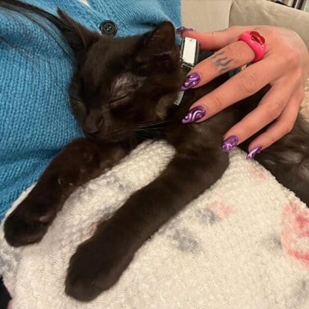 Otro detalle de estilo que compartió en el carrusel de fotos es su manicura. Como muchos saben, suele usar el efecto 3D en colores vibrantes y esta vez fue el turno del violeta con acabado cromado, un trend que resurge en la época de celebración que pronto comienza.