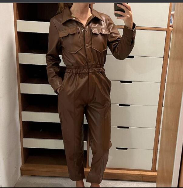 Otra opción, si quieres utilizar otros tonos otoñales, es este increíble jumpsuit café con botones, perfecto para las épocas de lluvia y frío, ya que tiene un forro caliente, el cual te hará ver increíble.