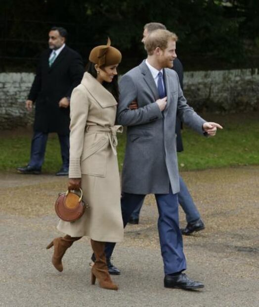 Por un lado, Meghan llevó un atuendo cosmopolita, perfecto para la ciudad (y oficina) que seguro copiarás de inmediato: botas altas café de tacón ancho, un trench-coat (que fungía más como vestido), un tocado especial (muy tradicional) y guantes de piel del mismo color que las botas. Este atuendo sin duda se perfila como un look muy adaptable a la vida cotidiana.