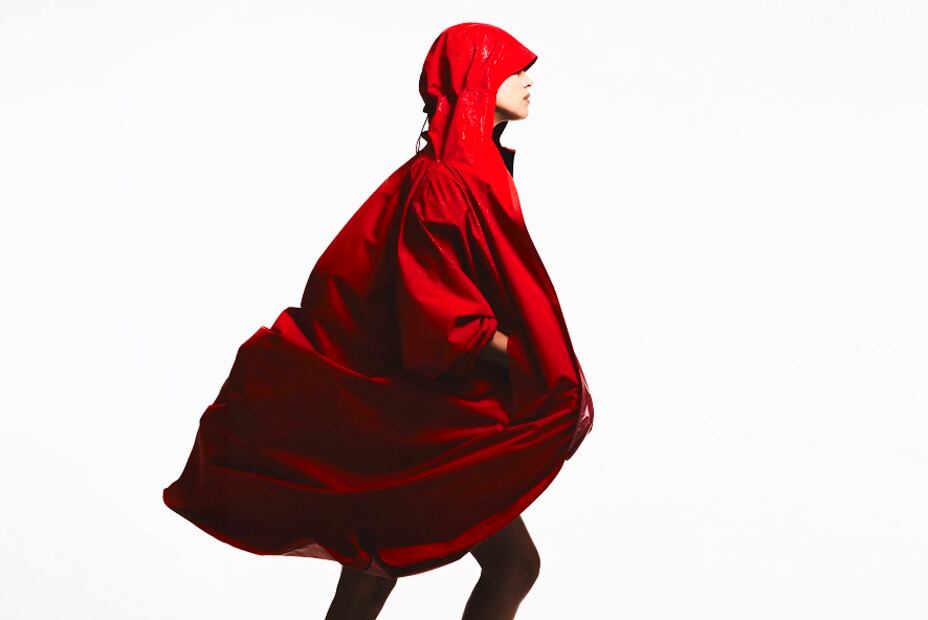 Una de las piezas de ropa más llamativas de esta colección que modela Irina es una parka roja oversized, con tecnología StormMove, una tela transpirable que protege de la lluvia y el viento, según explican.