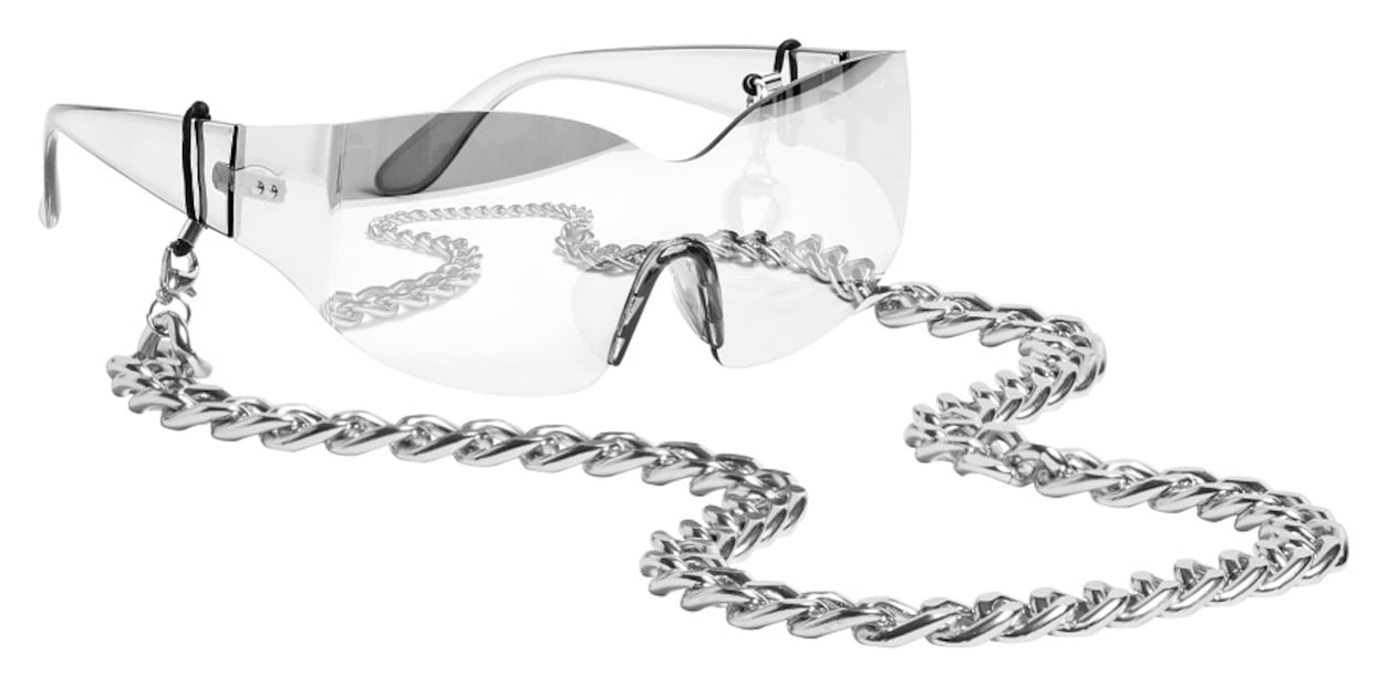 Los accesorios son piezas verdaderamente originales. Encontrarás una pulsera negra con diamantes de imitación que sirve como pesa para la muñeca. Los guantes negros aportan dramatismo chic al outfit, mientras absorben la humedad; estos guantes de running están hechos con material DryMove.