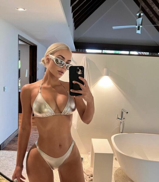 Kim Kardashian sorprende con un bikini metálico