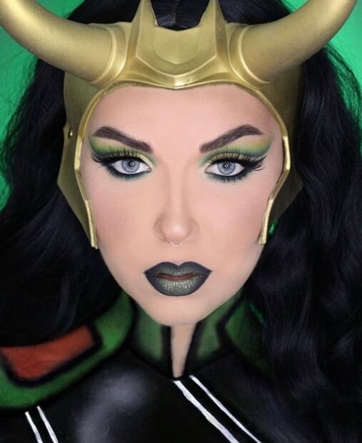 Si eres fan de Marvel, este puede ser un buen año para inspirarte en Loki y recrear unas sombras donde predominen diferentes tonos de verde con negro y un toque de dorado. No olvides una diadema dorada con cuernitos que puedes pintar para elevar todo el look .