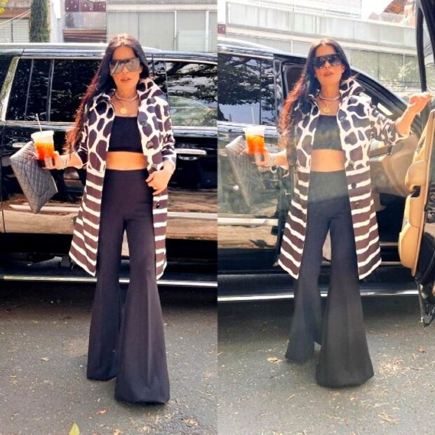 Es un atuendo muy elegante y sofisticado ideal para la temporada , ya que está conformado por prendas básicas de primavera , como un crop top negro, con el que Martha dejó salir a relucir su figura, que combinó con un pantalón acampanado de cintura alta del mismo color, uno de los modelos favoritos de la empresaria.