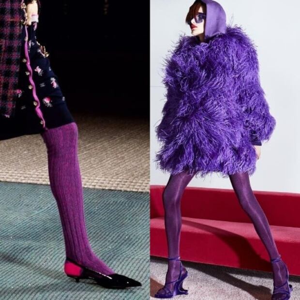 Por otro lado, Chanel también hizo acto de presencia con uno de sus sellos más característicos como lo son las medias de color. El púrpura al parecer será uno de los tonos favoritos.