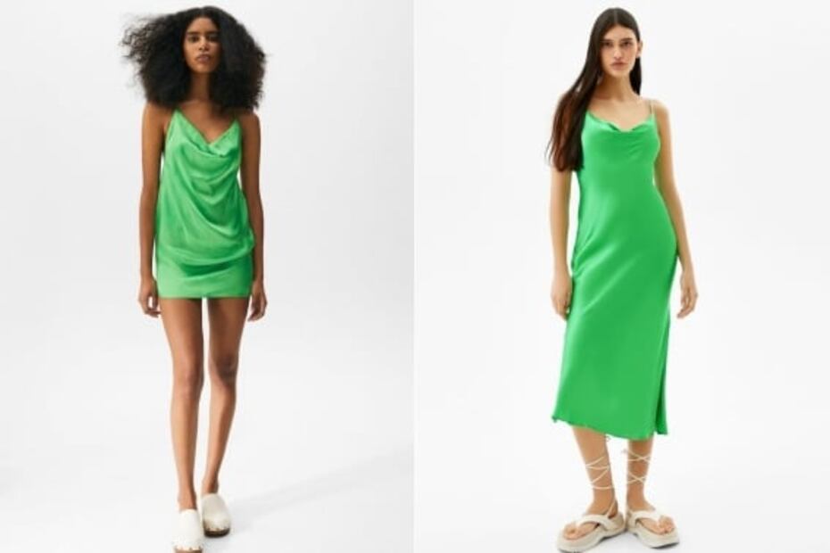 Otro tono que reina en 2022 es el lila, cercano al famoso Very peri designado como el color del año. En primavera este tono es uno de los ganadores y puedes escoger tu slip dress en este color. Puedes combinar con otros de la misma gama, como un violeta intenso, también con vibrantes, como el verde, o con neutros, como el beige. Para un look relajado, incluso puedes llevarlo con tu chamarra de mezclilla y tus tenis favoritos. El diseño de Stradivarius tiene un lindo escote cruzado.