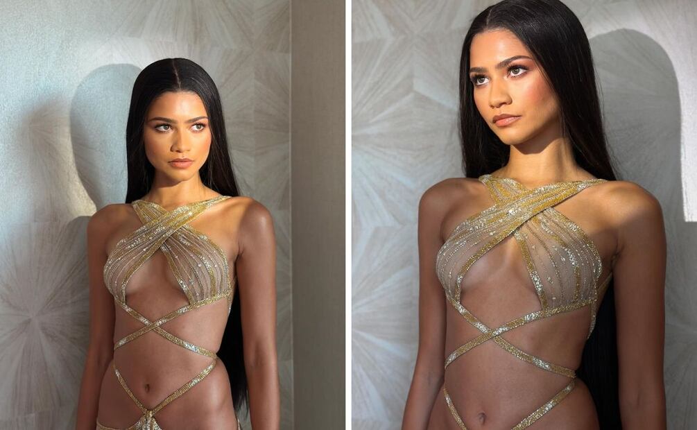 Zendaya lució un deslumbrante vestido vintage de Bob Mackie, de la colección "Foreign Intrigue" de otoño de 2001, un diseño que evoca el espíritu audaz y glamoroso de los años 70. El vestido, con un corpiño abierto y tirantes cruzados sobre el abdomen, tiene un parecido sorprendente con un diseño icónico que Cher usó en 1972, también creado por Mackie.