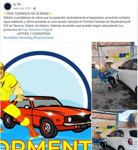 La noticia del exluchador también conmovió al gremio y en los próximos días se anunciará una función de lucha libre en el autolavado para también generar un ingreso extra en beneficio del tratamiento de Fray Tormenta.