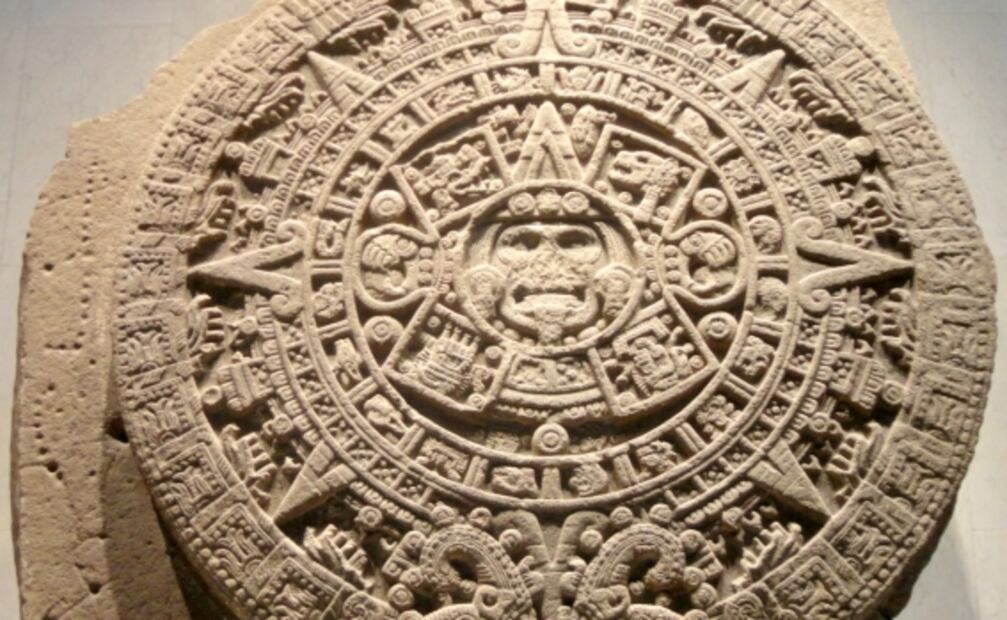 Aunque el monumento de 24 toneladas es conocido como Calendario Azteca, en realidad se cree que pudo ser concebido como una piedra para el sacrificio gladiatorio. Sin embargo, las imágenes labradas en la piedra expresan la cosmovisión de los mexicas. En sus anillos concéntricos hay elementos relacionados con el registro del tiempo y en su centro está el glifo 4 Movimiento, nombre del Quinto Sol o era de los mexicas.