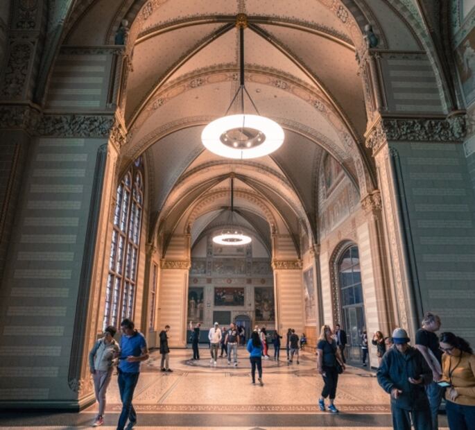 El Museo Nacional de Ámsterdam (Rijksmuseum) tiene la mayor colección de arte del siglo de oro holandés (siglo XV). Dentro de él podrás crear tu propio recorrido y ver las salas que más te interesen. Incluso podrás hacer el mismo tour que hayan diseñado otros visitantes. Admira las obras de arte más icónicas desde cerca, acompañadas de una narración en inglés donde te explican la escena de la pintura y algunos datos curiosos.