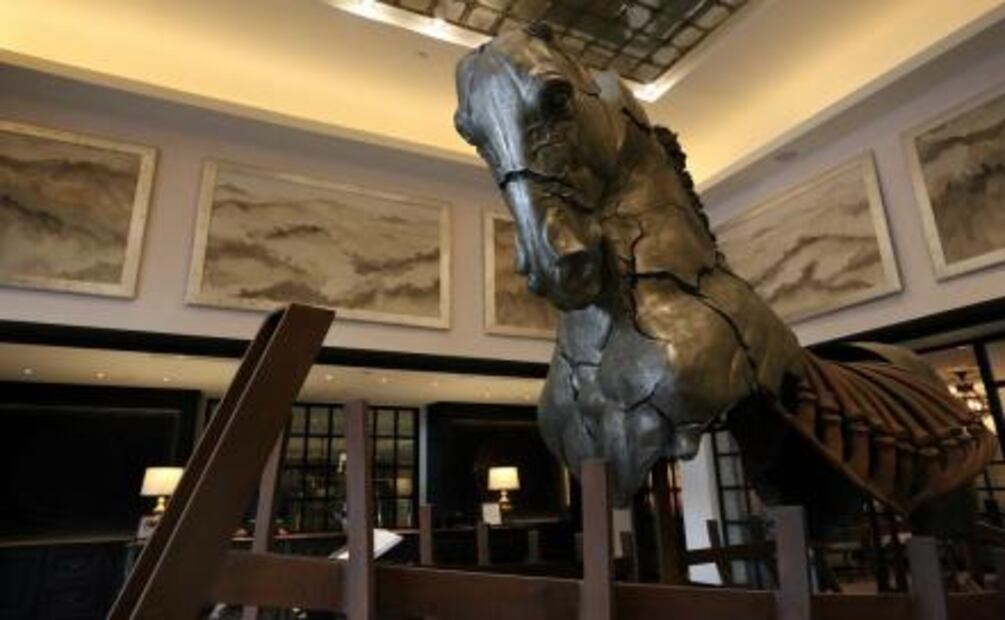 Pero hay más piezas a las que debes prestar atención: en medio del lobby, la obra del e scultor mexicano Gustavo Aceves , es un gigantesco caballo de acero y bronce que forma parte de la colección “Lapidarium ” del artista. Fue elegida por Constanza Lameiras, curadora de arte del Rosewood Puebla , desde que estuvo expuesta en la Puerta de Brandenburgo (Berlín, 2015).