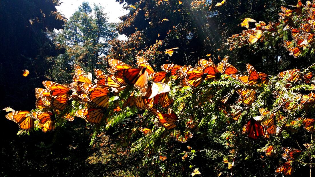 De color naranja con un entramado negro, las mariposas monarca han convertido los bosques mexicanos en su segundo hogar. Estos pequeños visitantes se hospedan en pinos y oyameles huyendo del crudo invierno.