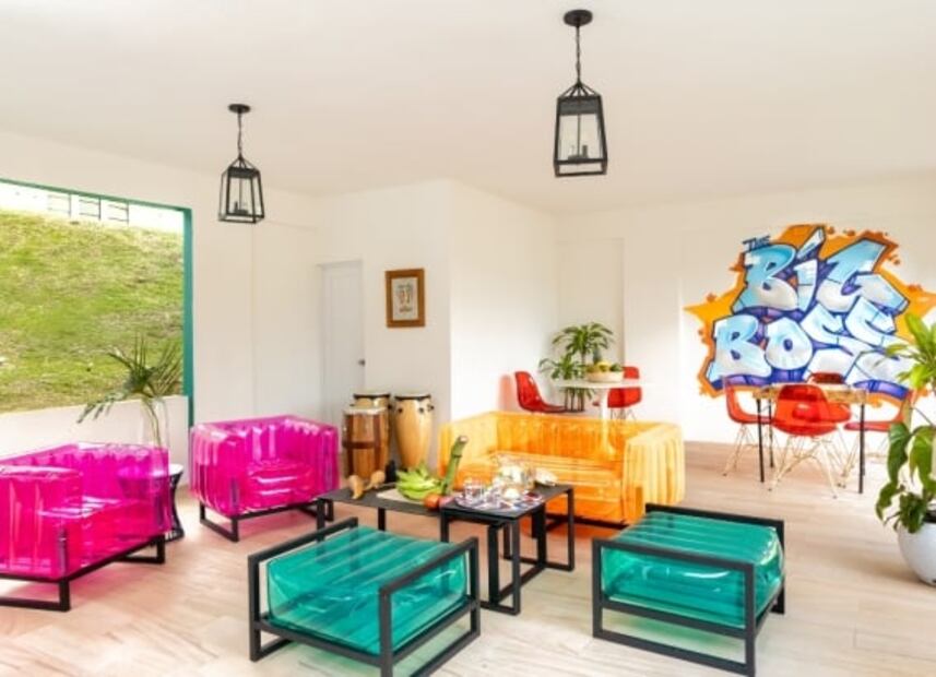Los afortunados que logren quedarse en la mansión de Luquillo podrán nadar en su piscina al aire libre, jugar billar en la sala de actividades, disfrutar de la casa en general, incluida la cocina, y sentarse en sus sillones neón. La playlist de fondo estará a todo volumen con las canciones de Big Boss .