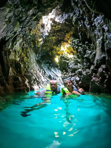 Una de esas formaciones que se secaron hace cientos de años es una especie de ‘muelle’ natural que resguarda uno de los secretos más hermosos de Veracruz: un espacio con tres cuevas subterráneas y paredes de lava solidificada; una de ellas parece un pequeño cenote.