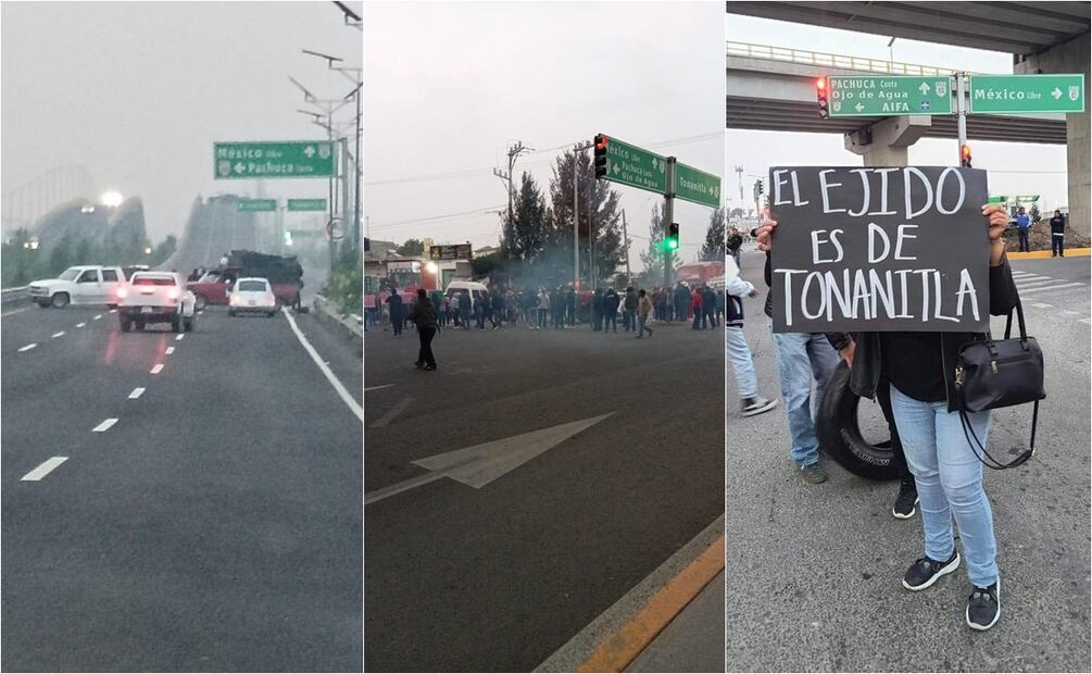 Tonanitla, Mex.- Por un conflicto limítrofe con el municipio de Tecámac, habitantes de Tonanitla bloquean el paso de automovilistas en ambos sentidos de la carretera Camino Libre a Tonanitla, en dirección Ecatepec; reclamando también el pago desde tierras ejidales que fueron usadas para el viaducto que lleva al Aeropuerto Internacional Felipe Ángeles.