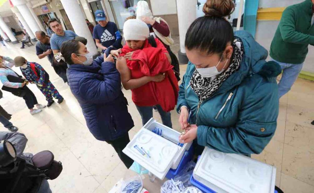 Toluca, Méx. Preocupados por el incremento en el número de contagios de influenza, neumonía y Covid-19, ciudadanos de diferentes municipios del Valle de Toluca aprovecharon para inocularse, pues se encontraron con puestos de vacunación que desplegaron instituciones del sector salud estatal y el seguro social en la capital mexiquense en Los Portales.