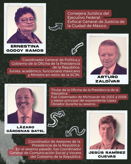“Son perfiles competentes. Rosa Icela tenía que integrar la Comisión porque es titular de Gobernación. Godoy y Zaldívar podrán ser las voces de derecho para la redacción de la propuesta y Lázaro y Jesús son personas cercanas a Presidencia que conocen el tema. José Merino es quien resalta en el grupo porque su Agencia no tiene relación con la reforma, habrá que ver qué función tendrá”, expone Arturo Sánchez.